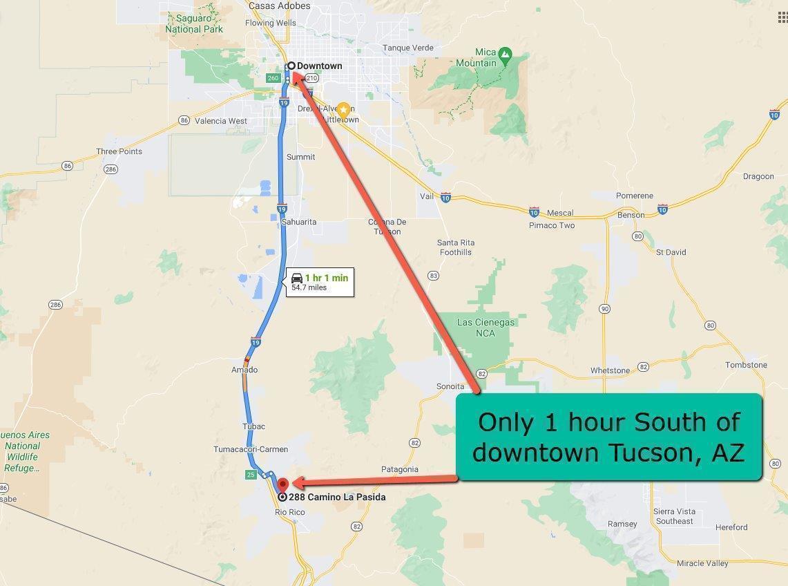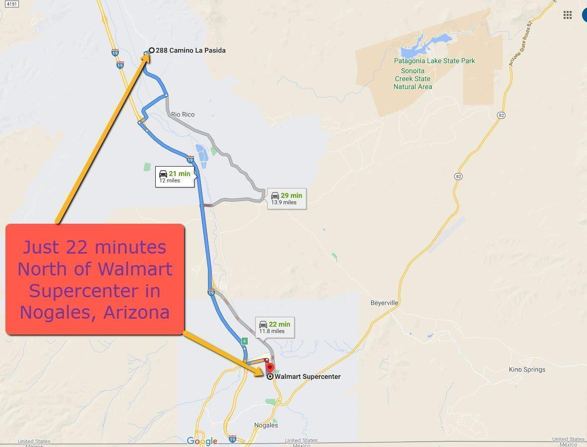 Directions: From I-19 Exit 17 Rio Rico Drive, turn Esat and drive 1.7 miles, turn left on Pendleton and drive 1.5 miles, then turn right on Camino La Pasida 0.2 miles to the property on the left