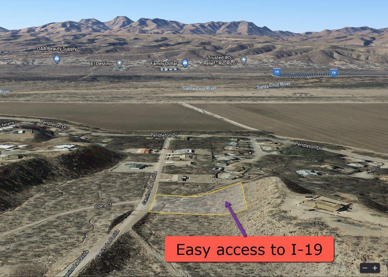 Directions: From I-19 Exit 17 Rio Rico Drive, turn Esat and drive 1.7 miles, turn left on Pendleton and drive 1.5 miles, then turn right on Camino La Pasida 0.2 miles to the property on the left